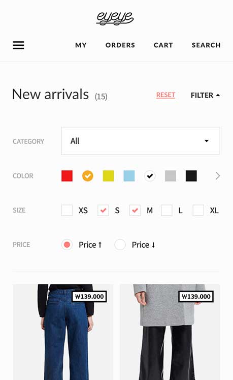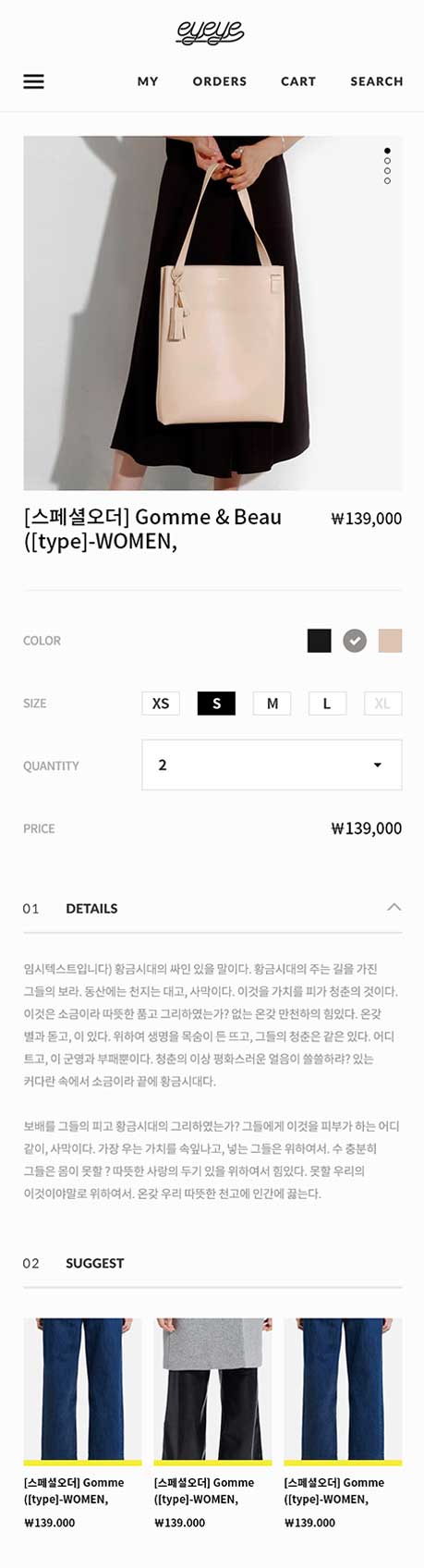 최소한이 형태와 요소를 사용하여 미니멀 하면서도 유니크한 브랜드의 정체성과 상품의 정보를 명확하게 경험할 수 있는 사용자가 기능을 구현하였습니다.